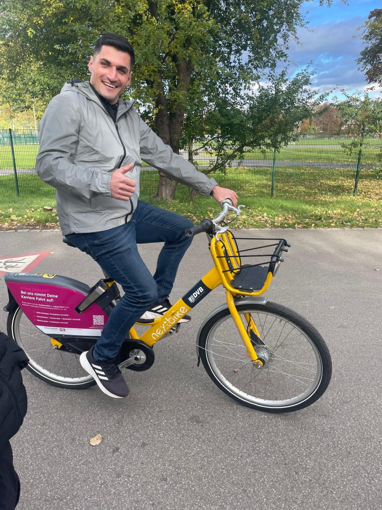 Trainer Tim Klatt verfolgte die Läufe mit dem Fahrrad…