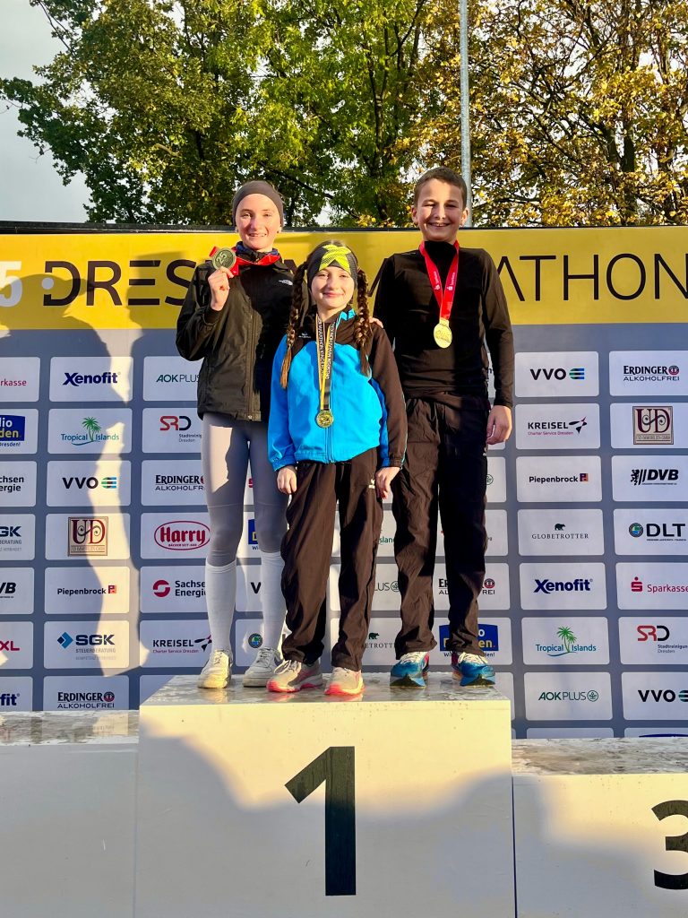 Seine Mutti Birgitta nahm den halben „Kanten“ in Angriff. Trotz starkem Wind gab es für sie auf der HM Strecke eine neue PB 1:33,23h und als Lohn den 2. Platz auf dem Podest